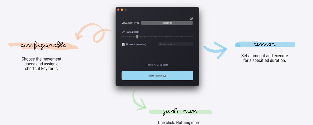 MacMouseJiggler is a lightweight macOS app that prevents your screen from sleeping by simulating mouse movement.